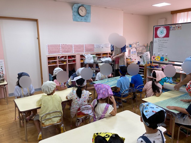 保護者の皆さま、エプロンと三角巾のご用意をありがとうございました。