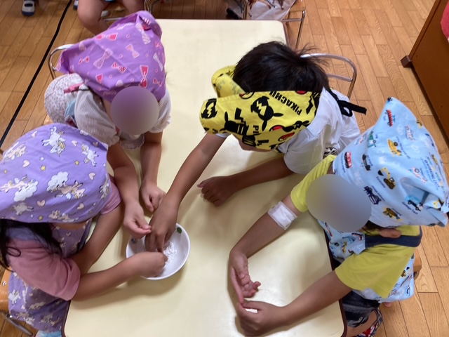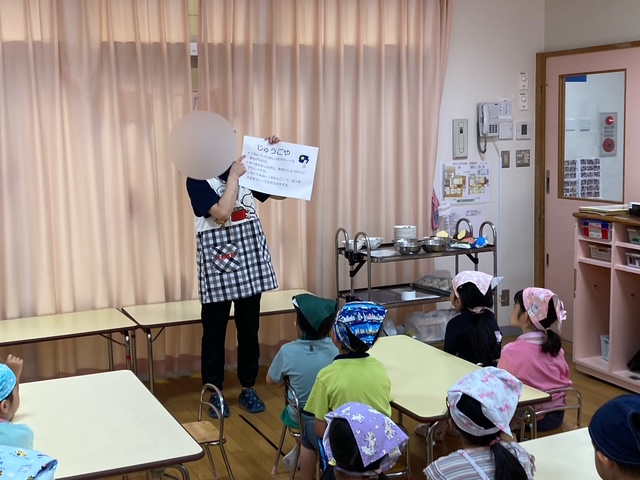 保護者の皆さま、エプロンと三角巾のご用意をありがとうございました。