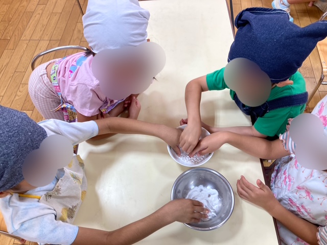 お団子の材料である、白玉粉と上新粉を触ってみてみました。