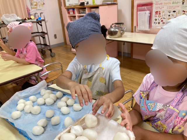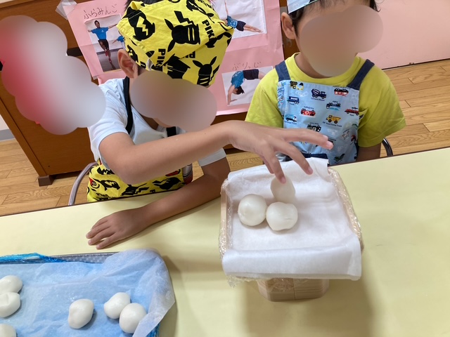 食育活動で、十五夜のお話とお月見団子の飾り付けをしました。