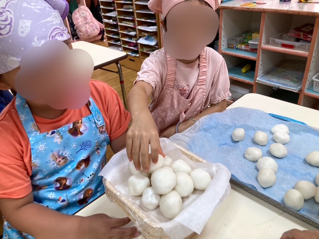 十五夜は満月が1年で1番綺麗に見える日で、お月様を見ながら秋の収穫に感謝します。その時に、白くて丸いお団子でお月様を作ってお供えする、ということを知りました!