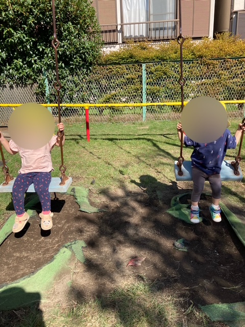 お友達と一緒に楽しくブランコ!1人でもこぐことがでるようになりました。