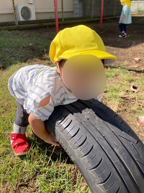 大きなタイヤにまたかったり、登ったりしたよ!
