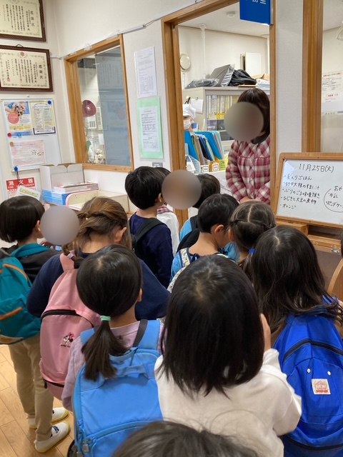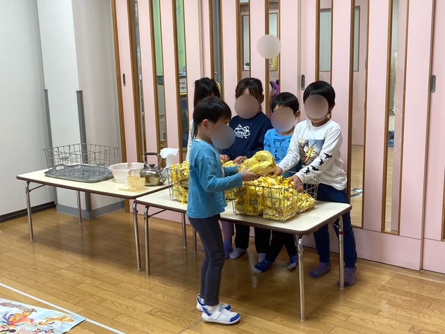 給食当番さんからお弁当を「ありがとう!」と受け取っていました。