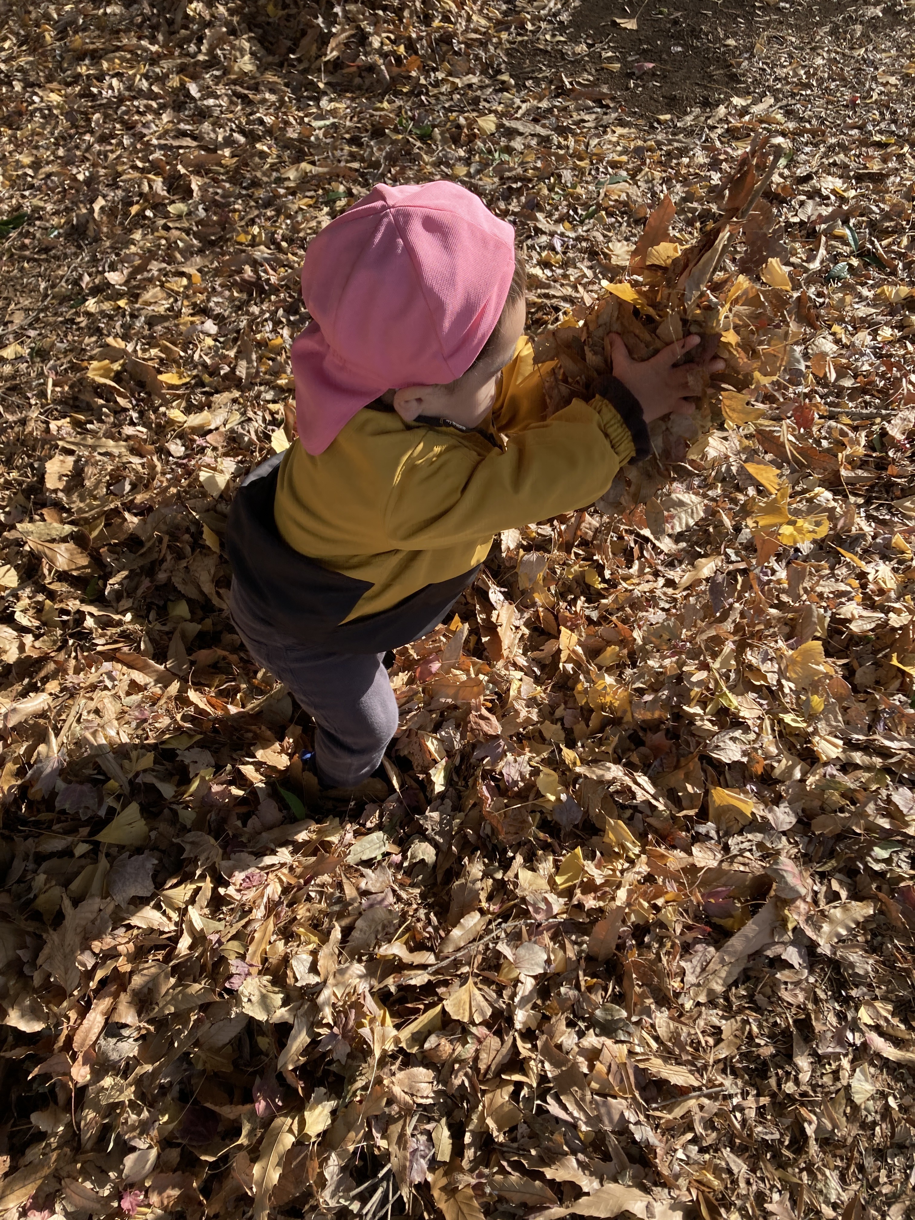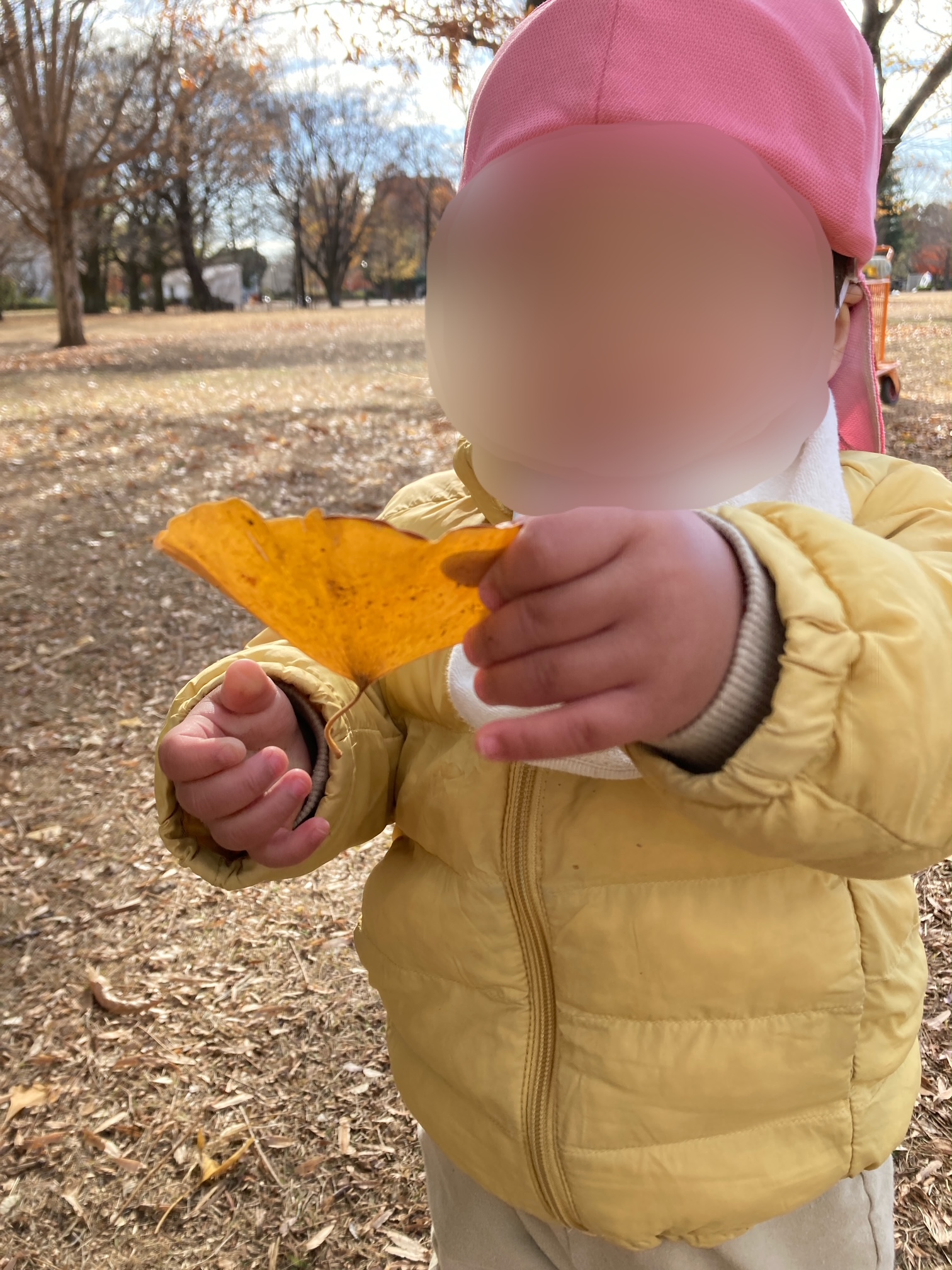 「あっ!あっ!」綺麗なイチョウの葉っぱを発見!