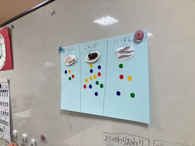 最後に、ひとり一つ、お気に入りの出汁にシールを貼りました。