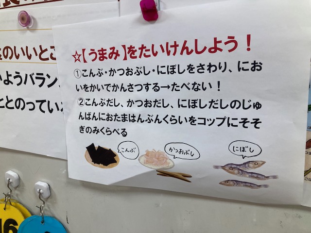 鰹節、昆布、煮干しそれぞれ触ってみたり匂いを嗅いでみたり素材そのものを感じました。