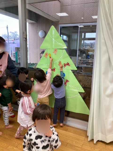 「保育園でもクリスマス会やるよ」と伝えると「やったー!」「サンタさん来るかな?」と期待する姿が見られました。