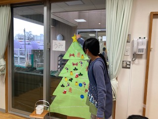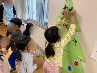 サンタさんに気づいてもらうためにツリーの飾り付けをお願いしました。