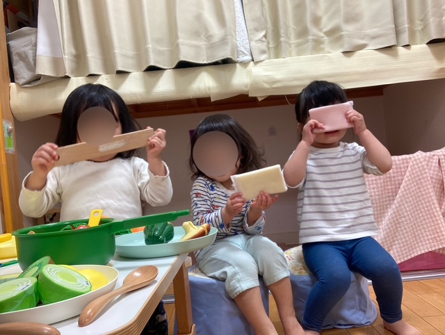 お店屋さんごっこでは料理が完成すると、「しゃしんとる!」としっかり写真を撮っていましたよ。