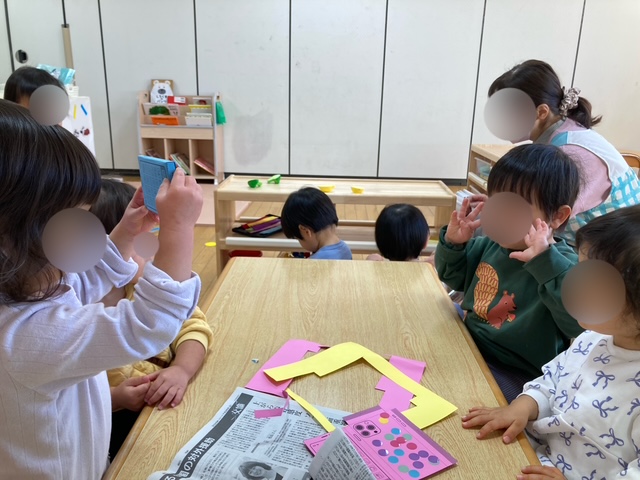「かわいいのつくるの」とシールを貼りながら嬉しそうな様子です。