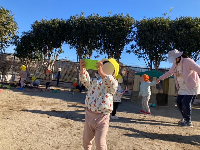 園庭にもスマホを持っていき、「カシャ!」と空や園庭の様子を写真におさめていました。