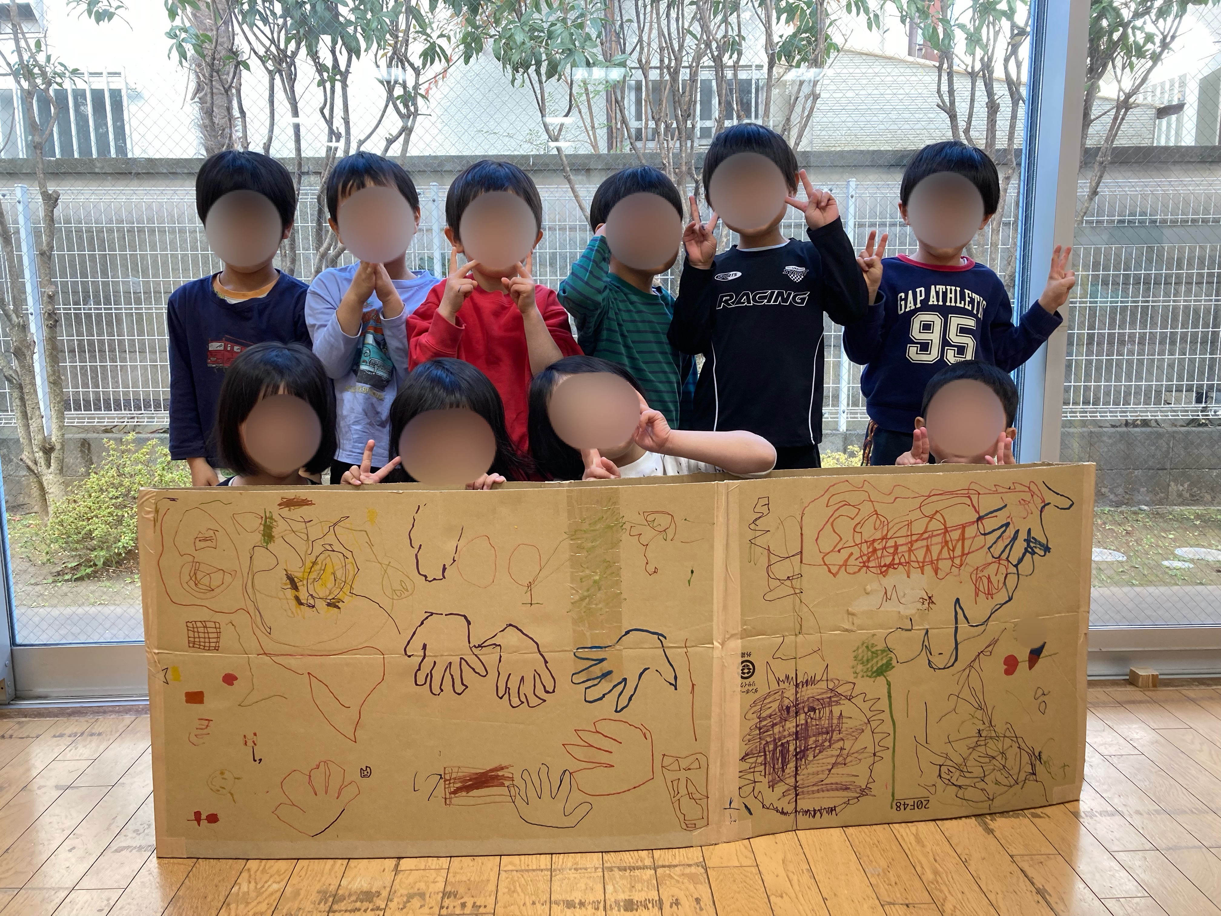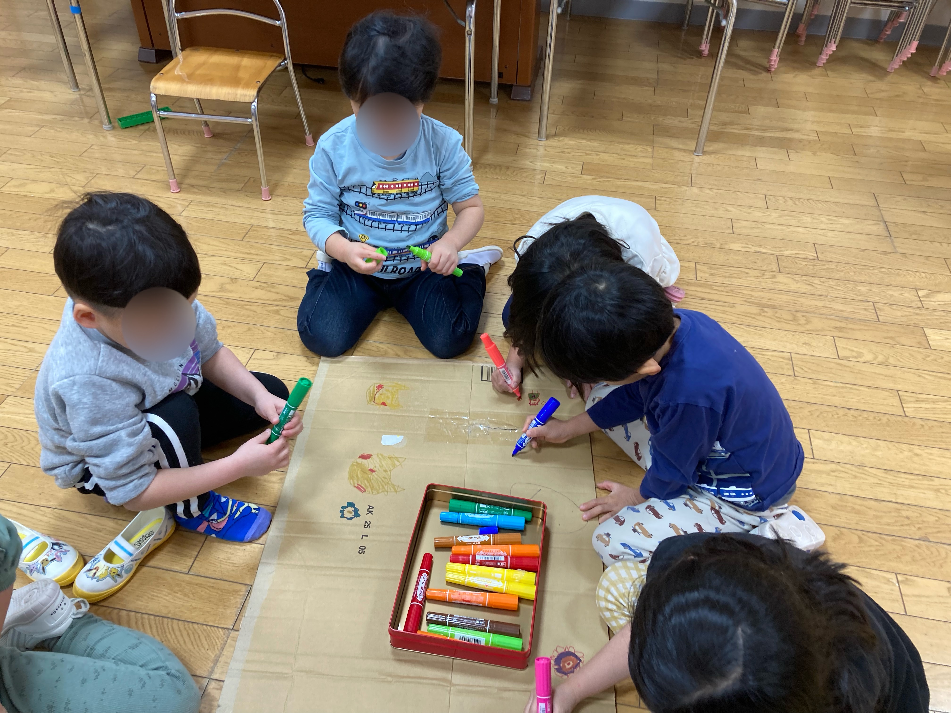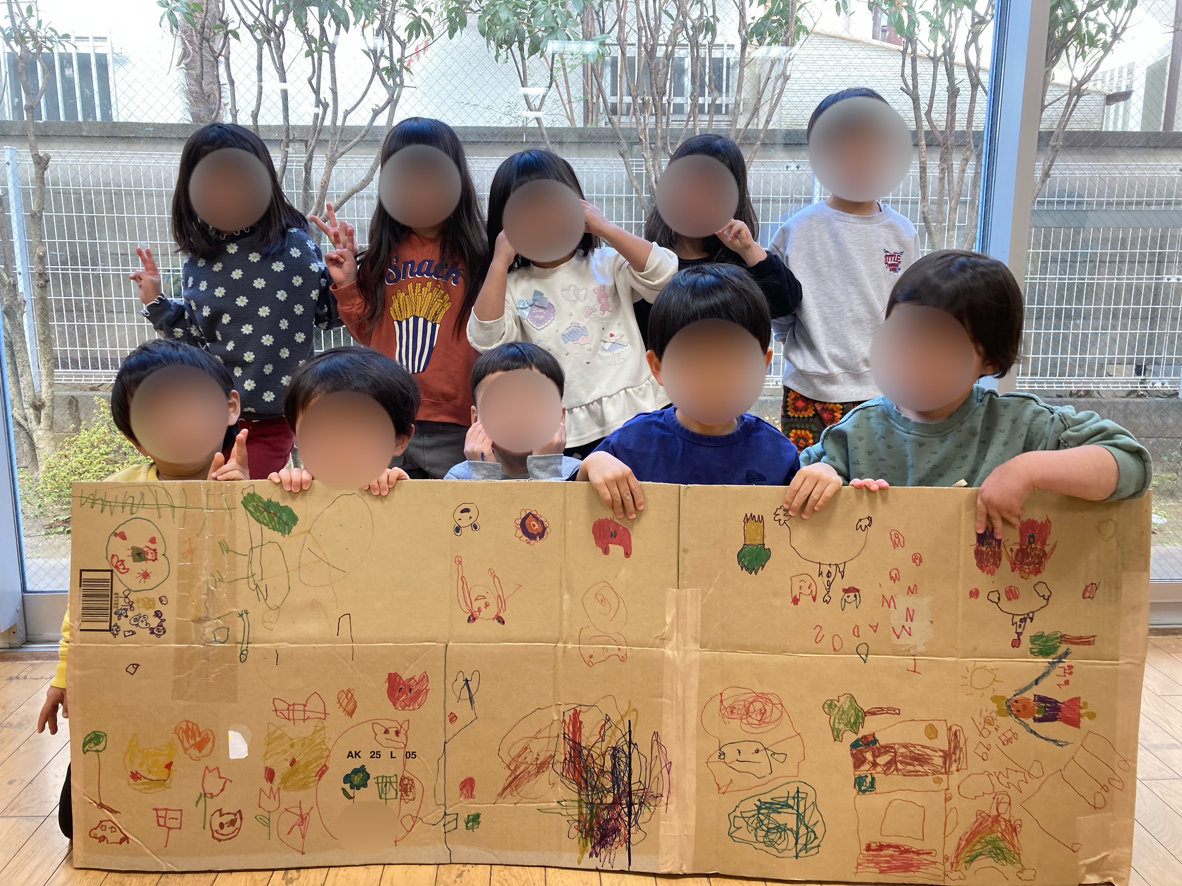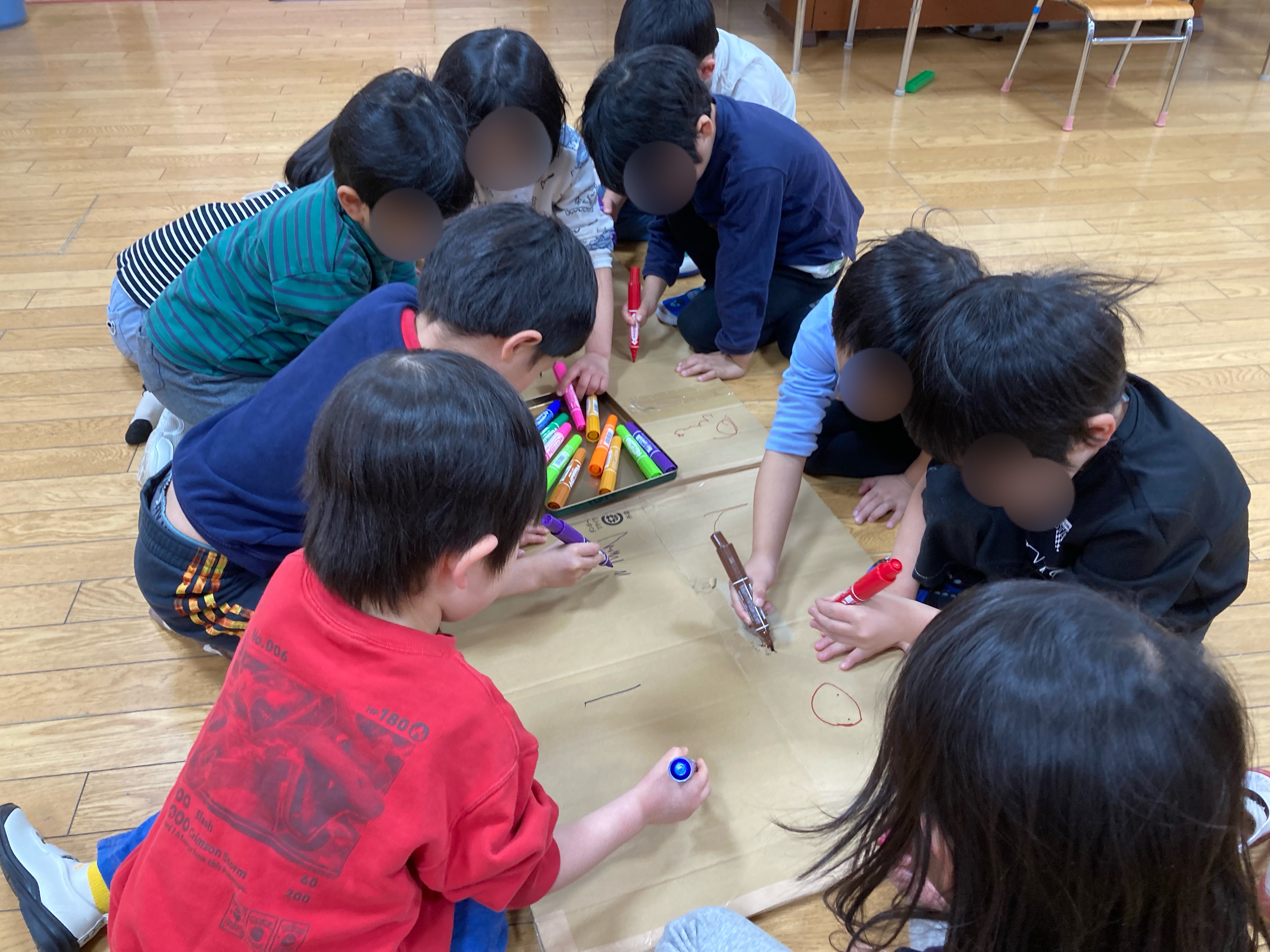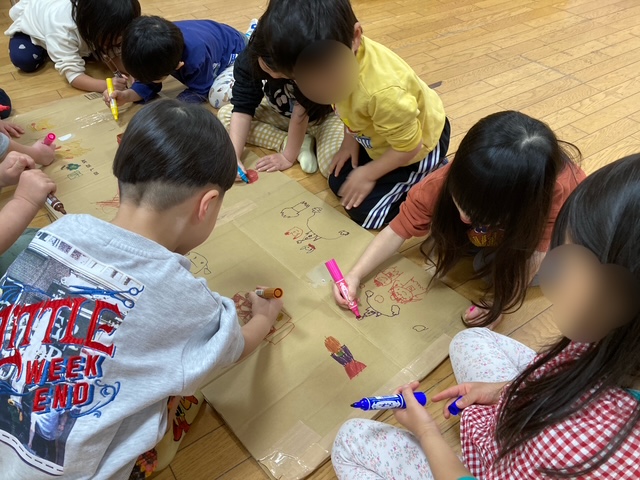 みんなで段ボールにお絵描きをしました!