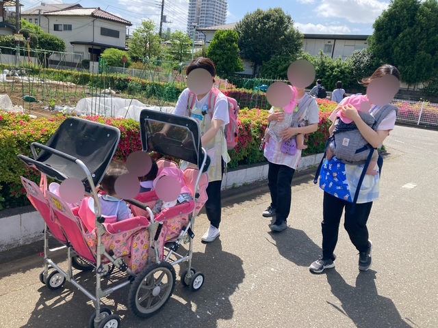 今の星組さんは、完了食のお友達と離乳食のお友達で生活の時間が違うので、園周辺を短時間でぐるっと楽しみました!