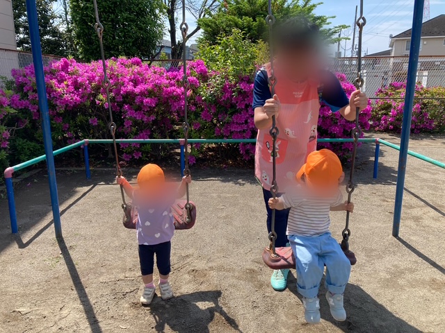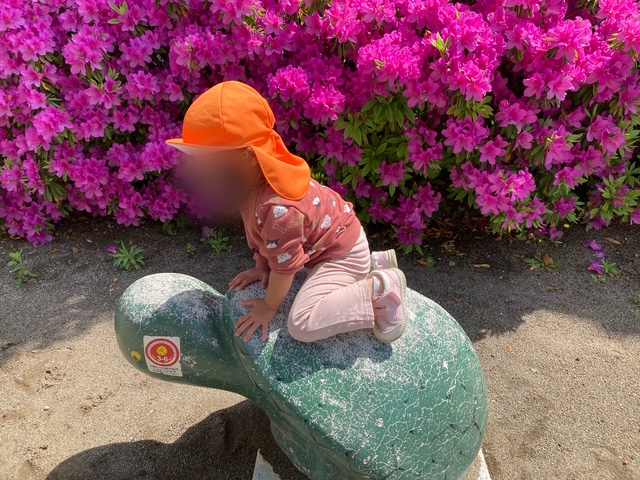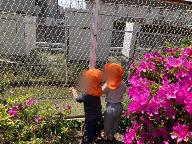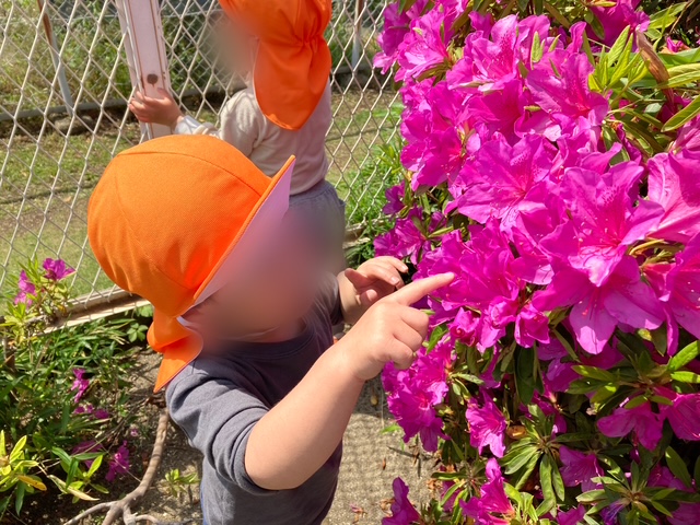 公園に到着すると、ツツジの花がたくさん咲いていました。花の近くに行って触ったり、匂いを嗅いでいました。「綺麗だね!」と感想を言っていました。