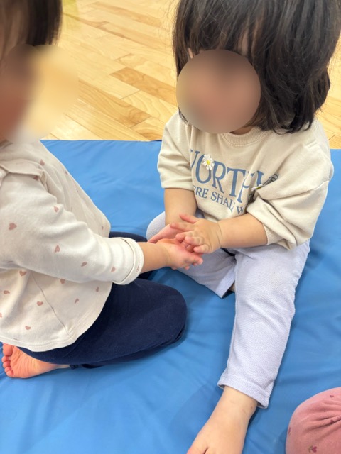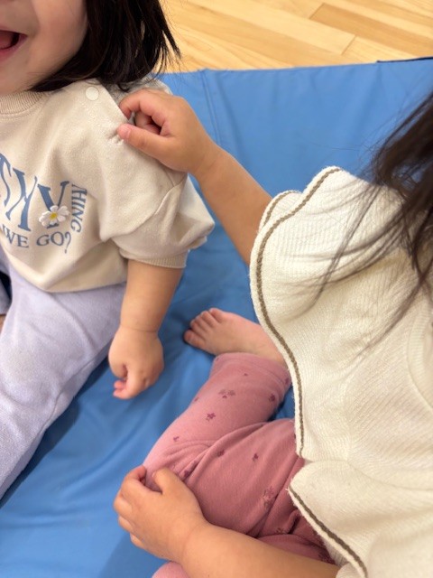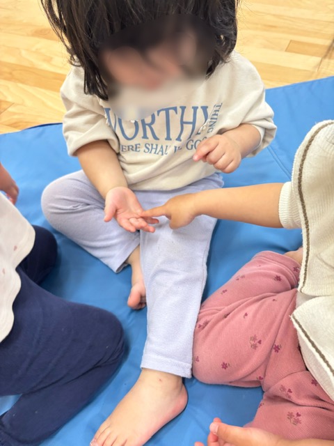 「1本橋こちょこちょ」というわらべうた遊びをごぞんじの方も多いとは思いますが、その遊びを通してくすぐり遊びを楽しんでいます。