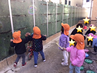 園庭に出ると久しぶりにシャボン玉を楽しんでいた子どもたち。