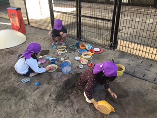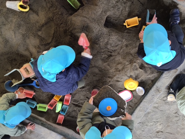 お砂場ではみんなでトンネルを掘っていました。協力してひとつのものを作れるようになってきています。