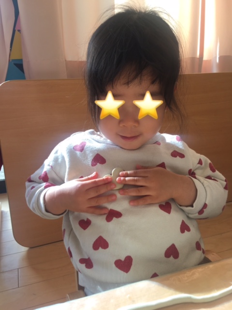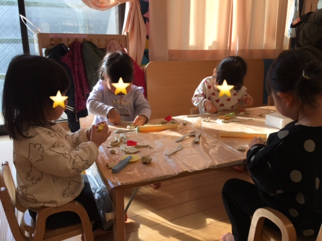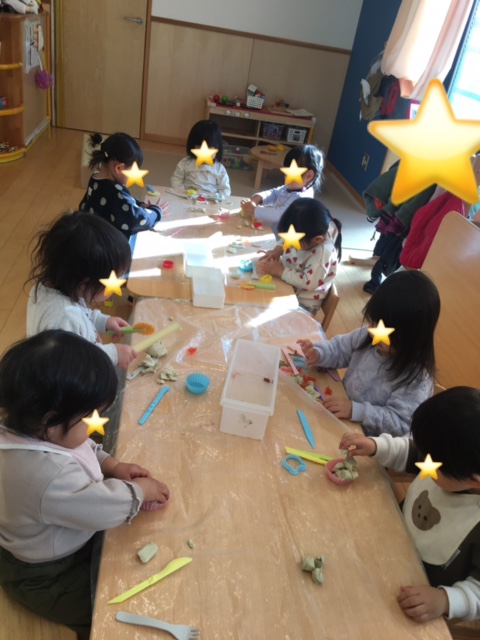 お部屋で粘土遊びをしました。