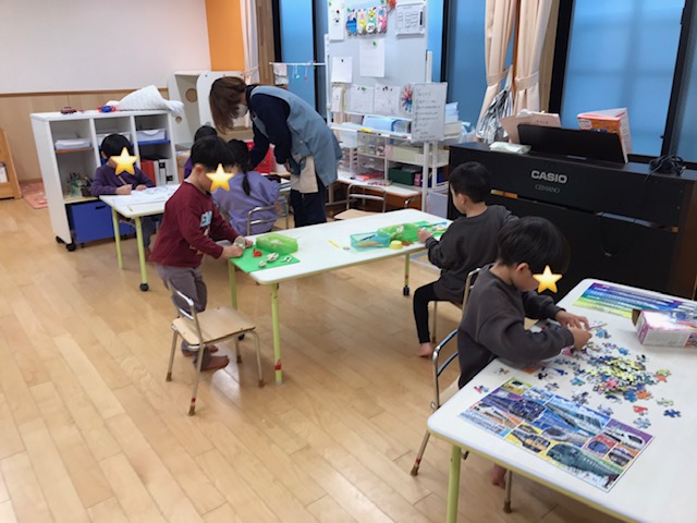 昨日から、お昼寝がなくなりそら組のお部屋で過ごしています。「遊べるの嬉しい〜!」と大喜びの子どもたち。体を休める時間を作りながら、静かに遊んで楽しく過ごしています。