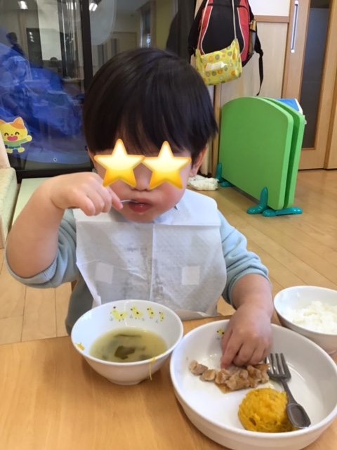 沢山遊んだ後は食事を楽しみにしている子が多く、自分でも食具を上手に使って食べられることも増えてきました。