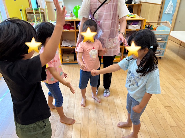 お部屋でゲームをして楽しく過ごしました。 チームを決める際にグットッパをしてチームを決めました。 チームになると「がんばろうね」と声を掛け合う姿がありました。