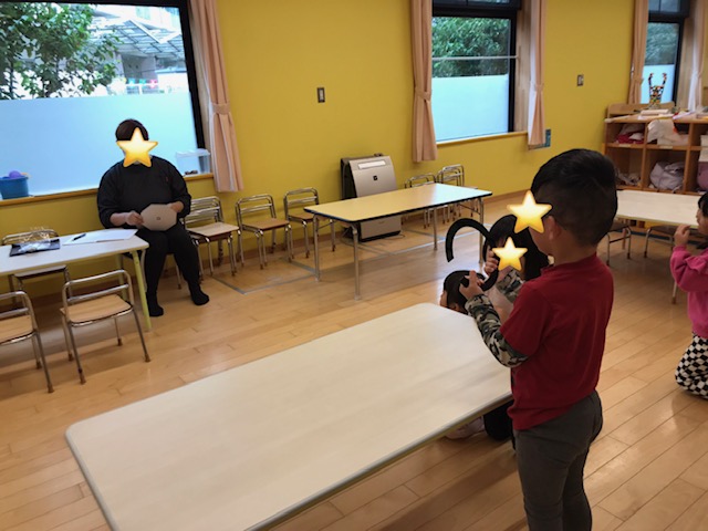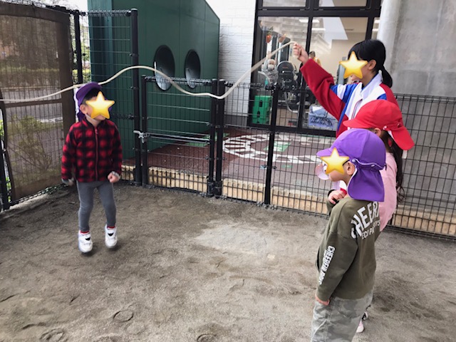 職場体験のお姉さんとも遊ぶ姿がありました。 「いっしょになわとびやろう!」と子どもたちからあそびに誘う姿があり、楽しく遊びました。