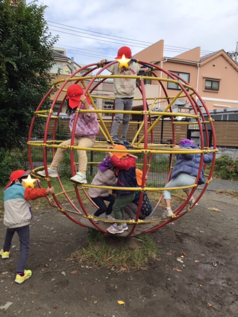 公園では、さまざまな遊具で遊びました。友達と順番で使ったりと思いやりの気持ちも見られました。