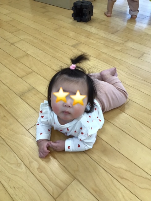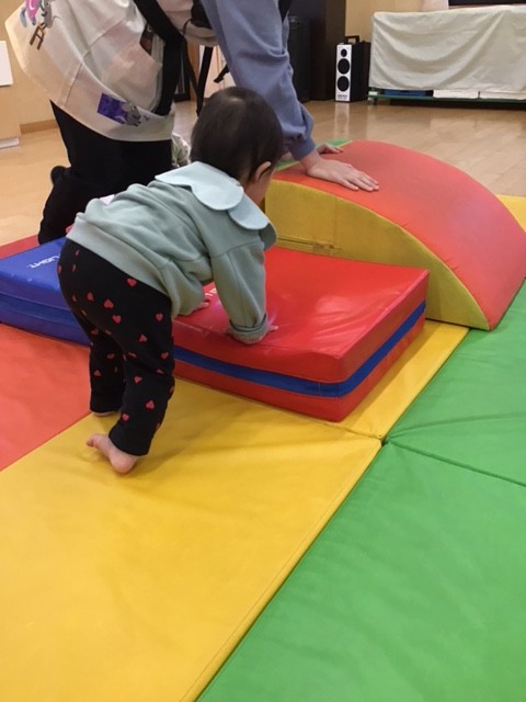 お部屋よりも広いホールでは沢山這い這いして体を動かしたり