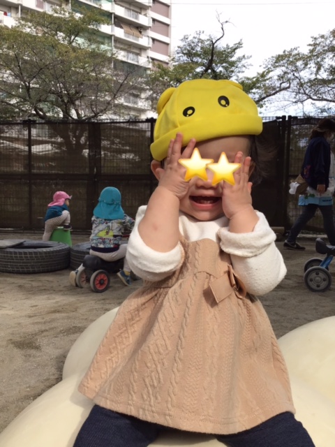 いないないばぁの声に合わせて、顔を隠して見せてくれましたよ。
