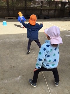 最後はゲームを楽しみました。 縄が下からきたら上からきたりするので、ジャンプするので避けたりうえからくるとしゃんがんで避けていました。