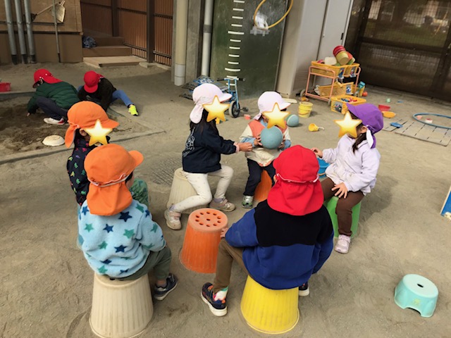 園庭に出ると「〇〇くんばくだんゲームしよう」とお友達を遊びに誘い、お友達と楽しく遊ぶ様子がたくさん見られました。 「じゃあみんなでやろう!やりたいひとー?」といってみんなで楽しく遊ぶ姿がありました。