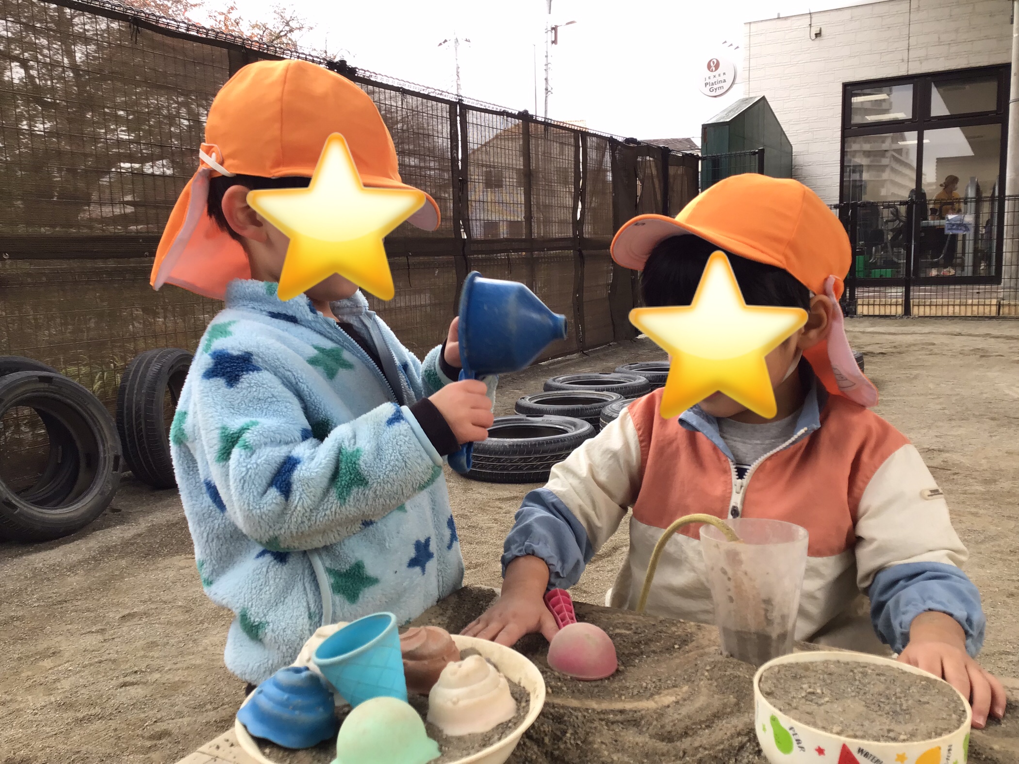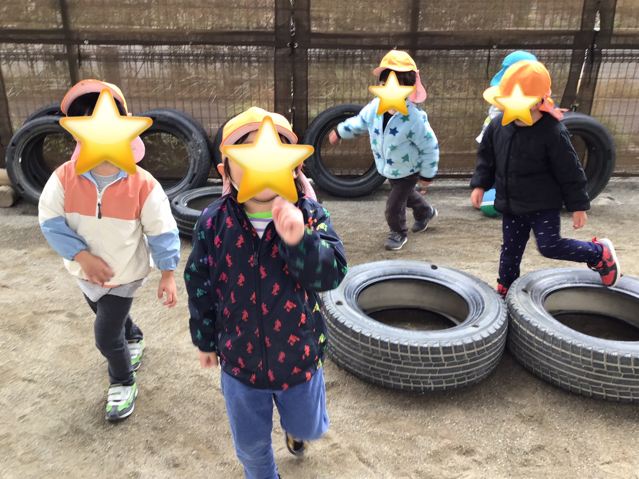 お家を作ったり、タイヤの中に隠れて遊んでいるすがたがあったり、アイスクリーム屋さんができて、みんなにごちそうそていました。
