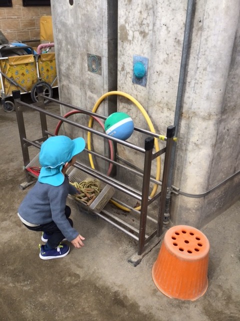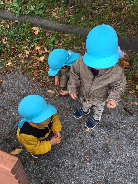 お散歩に出かけると前に見つけたどんぐりとは違う形のどんぐりを見つけました。形や大きさが違うことに気がついていました。