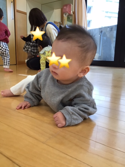 ホールはお部屋よりも広い場所なので沢山這い這いできました。