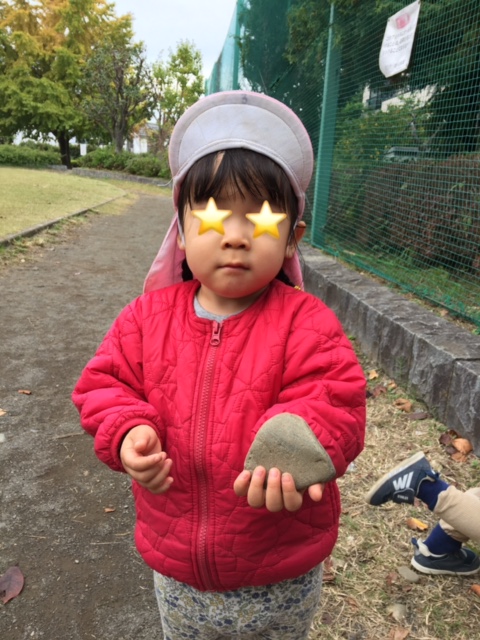 三角の石も発見!「おにぎりどうぞ」と持ってきてくれました。