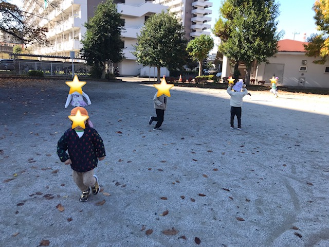 「ふえおにするひとー?」「やりたい!やりたい!」とやり取りをしながら一緒に遊ぶ姿がありました。たくさん公園内を走り、元気いっぱい遊んでいましたよ。