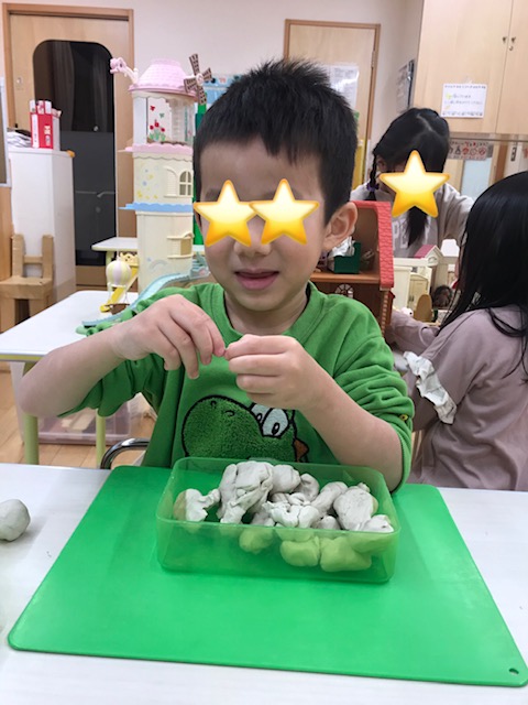 お部屋では久しぶりに粘土遊びをしていました。以前作ったものがそのまま残っていて「これ前作ったやつ!懐かしい!」と友達と思い出していました。