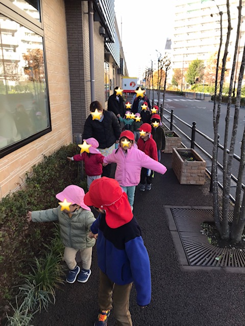 うさぎ組さんと中ふれあい公園へ行きました。 手を繋いでゆっくり歩いて、優しく連れて行ってくれました。