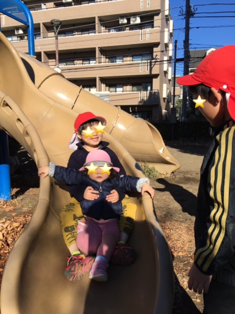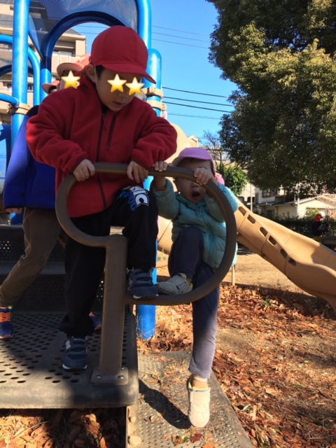 公園でお兄さんお姉さんが一緒に遊んでくれました。