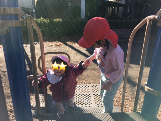 そら組さんと一緒に中ふれあい公園にお散歩に行きました。 公園までそら組さんが手を繋いでくれました。