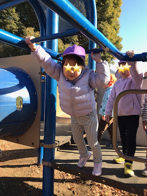 遊具でも楽しく遊びました。うんていや滑り台など、好きな場所で伸び伸び楽しんでいました。