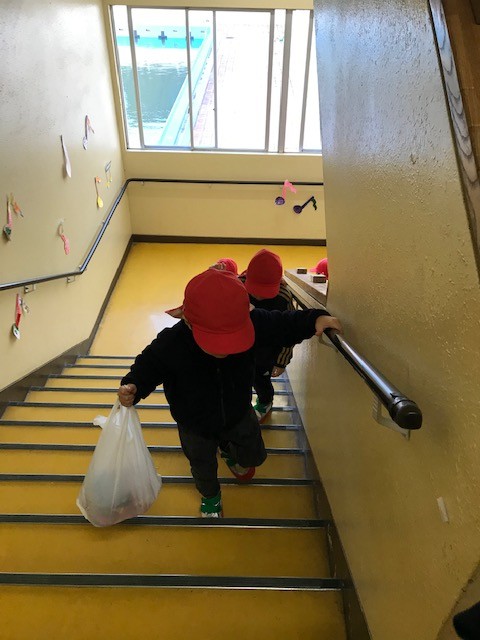 校舎をキョロキョロ見渡し「学校って広いね」「広くて迷子になっちゃうかも」と4ヶ月後に一年生になる事を想像しながらワクワクしていました。