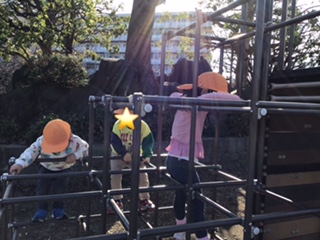 公園では大型遊具に登ったり、滑ったりを楽しんでいました。
