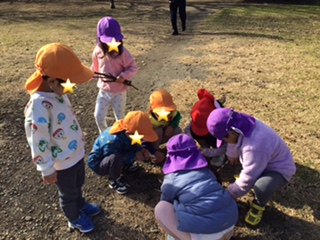 広場ではみんなで「増え鬼」「バナナ鬼」をしました。元気にたくさん走り回っていました。