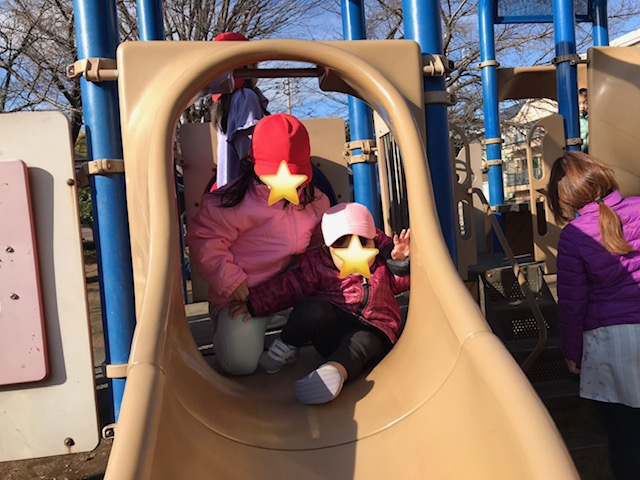 滑り台も一緒にすべって、お互いに笑い合っていました。