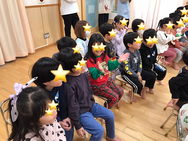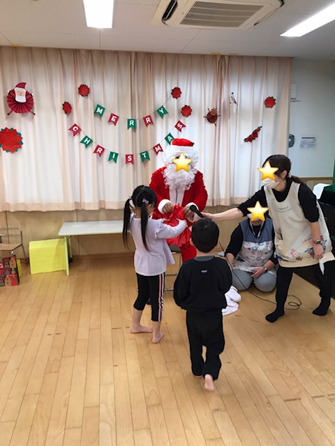 クリスマス会に参加しました。先生たちからの出し物のマジックショーに大喜びの子どもたち。「なんでー!」「すごい!」と驚いていました。「こうなってるのかな?」と友達とどうなってるのか考える姿もありました。