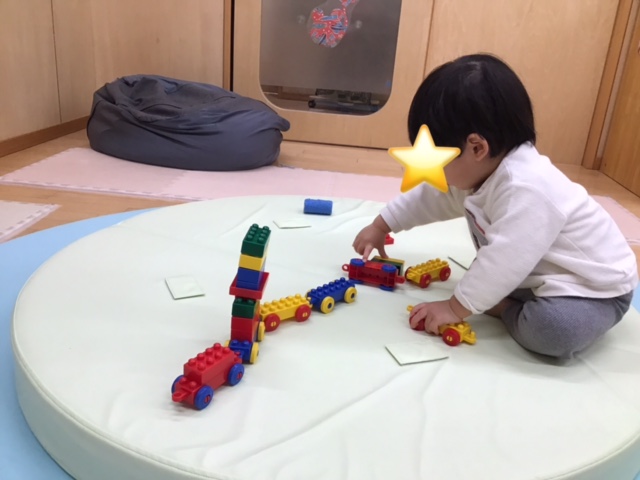 ブロックを自分でもつなげられるようになり、真剣につなげています。