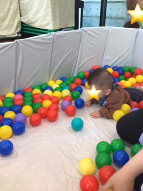 ホールでは大きなボールプールに入って遊び、沢山のボールを触りました。