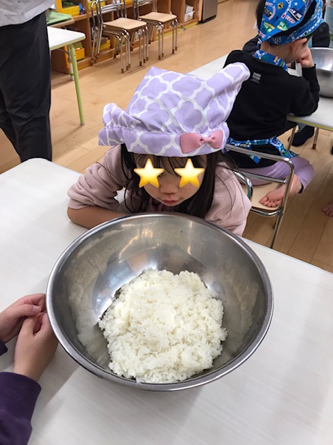 給食の先生から「新年もきたひだまり保育園の子どもたちみんなを守ってくださいねと神様にお願いするために神様へのお供えをするもの」と教えてもらいました。